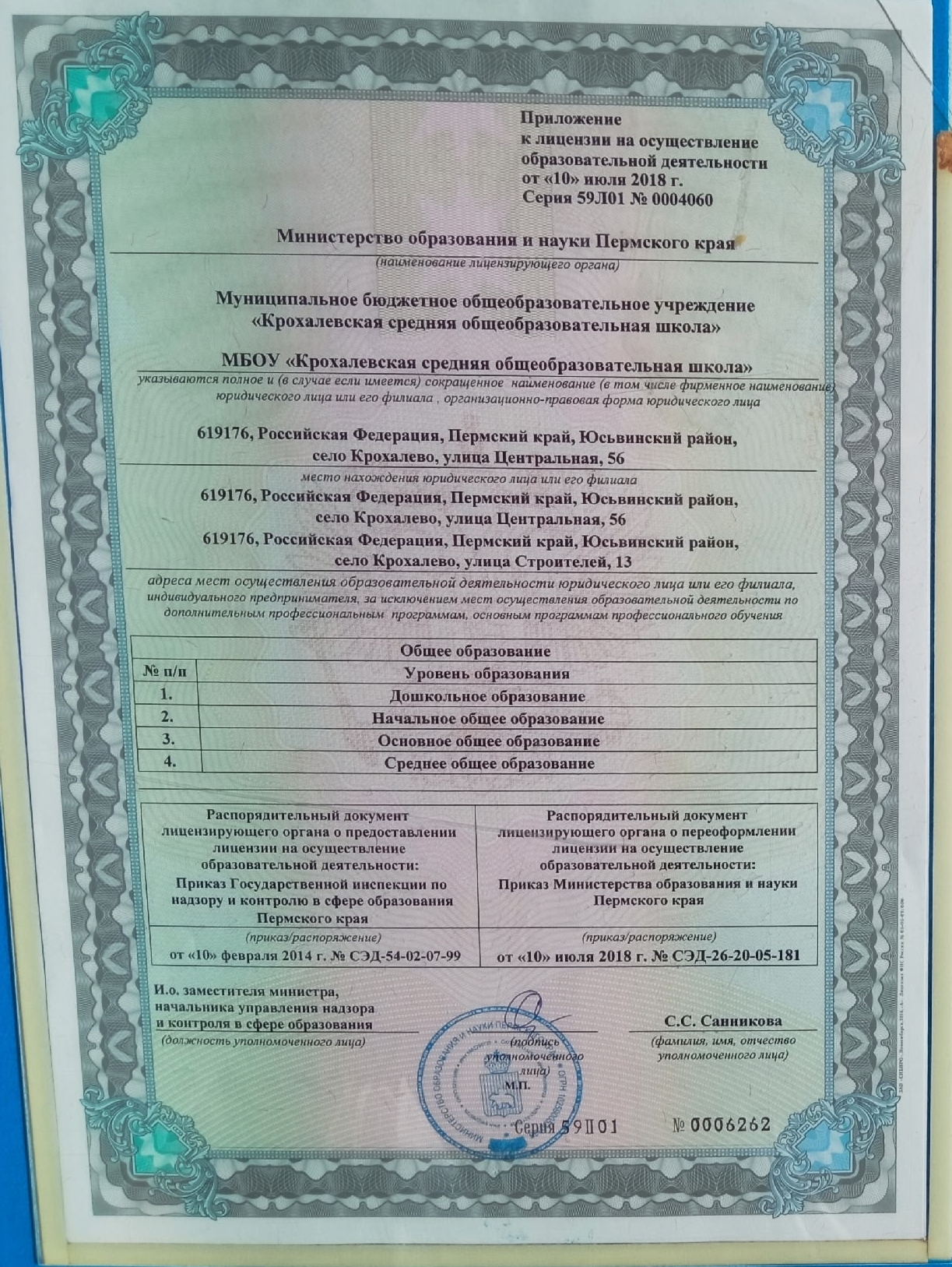 Сокращенное название образовательного учреждения: МБОУ "Крохалевская СОШ"